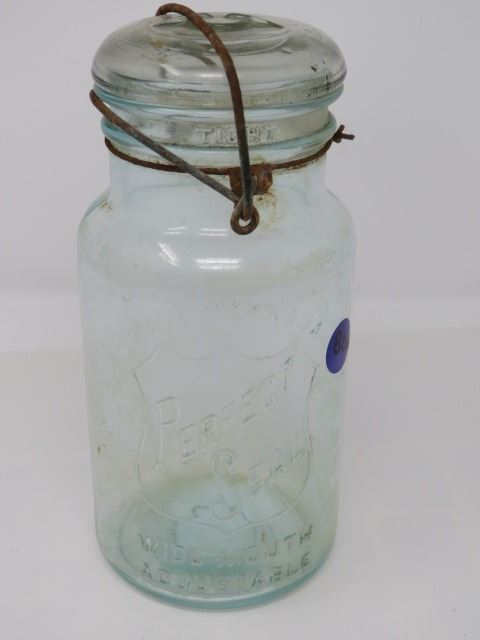 PERFECT SEAL QUART JAR, BLUE TINT MADE IN CANADA