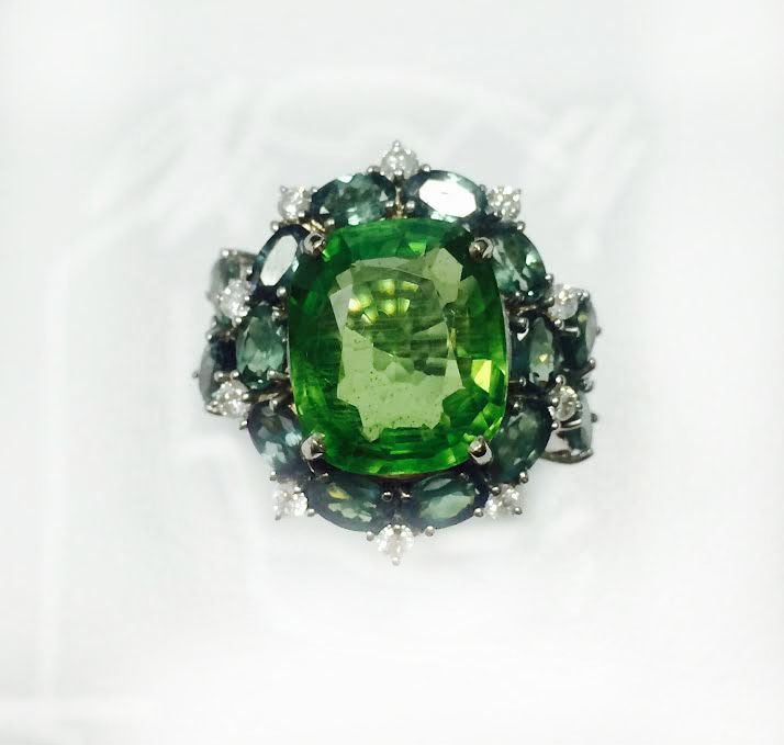PERIDOT 10.54CT, 18K W/G RING 10.02GRAM / DIAMOND 0.49CT / ALEXANDRITE 4.72CT