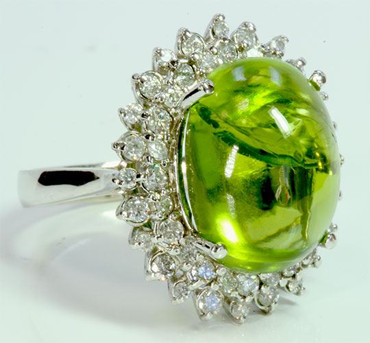 PERIDOT 15.23CT / DIAMOND 0.90CT / 14k WHITE GOLD RING 5.68GRAM