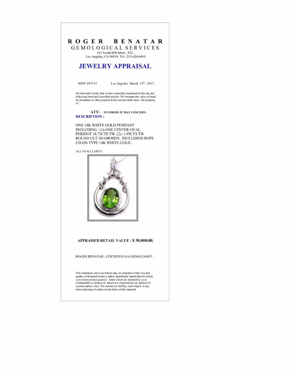 PERIDOT 18.73CT, 14K W/G NECKLACE _______ DIAMOND 1.95CT