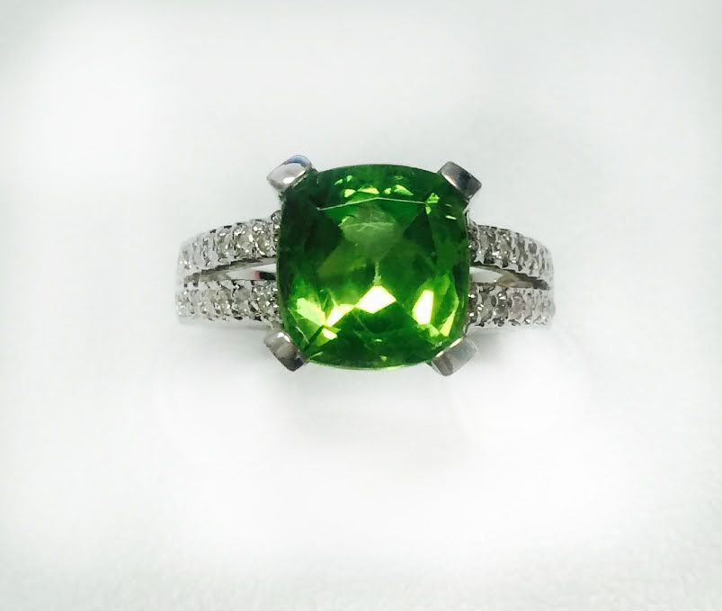 PERIDOT 4.16CT, 14K W/G RING 6.13GRAM / DIAMOND RD 0.63CT