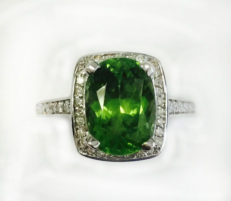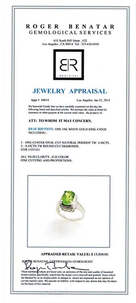 PERIDOT 4.46CT, 14K W/G RING 4.82GRAM / DIAMOND RD 0.45CT