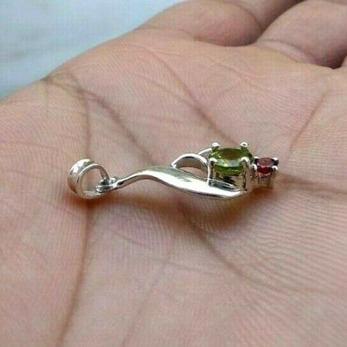 NATURAL PERIDOT , GARNET GEMSTONE 92.5 STERLING SILVER HANDMADE PENDANT , GEMSTONE - PERIDOT, GARNET , STONE SHAPE - OVAL , STONE SIZE - 6 mm, 3mm , STONE WEIGHT - 0.80 CTS , METAL - STERLING SILVER , METAL PURITY - 92.5 , METAL WEIGHT - 1.53 GRAMS, PENDANT LENGTH - 1.0 INCHES , QUANTITY - 1 PIECE PENDANT , PENDANT WEIGHT : 1.69 GRAMS