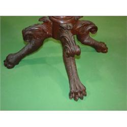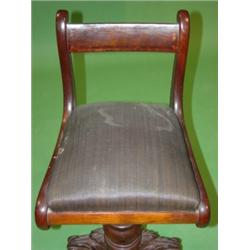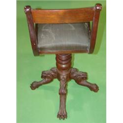 PERIOD WALNUT ORGAN STOOL WITH HAIRY PAW FEET. Carved leaves and scrolls on legs. Turned base. Original horse hair swivel seat. Inlaid back. 22" H to top of seat, 30" H to top of back, 13.5" W