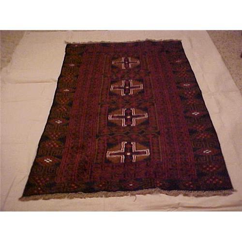 <table width="100%" border="0" cellspacing="0" cellpadding="4"><tr><td><em> </em></td></tr><tr> <td width="100%"> BEAUTIFUL HANDMADE PERSIAN BELUCHI RUG. EXACT DATE UNKNOWN, PROBABLY 1950'S. BELUCHI RUGS ARE NAMED FOR THE NOMADIC TRIBE. THEY ARE TYPICALLY LIGHTER IN WEIGHT SO THEY WOULD EASIER TO TRANSPORT THROUGH THE DESERT. THE COLORS ARE DARK NAVY/BLACK BACKGROUND WITH REDS AND TANS WITH A GEOMETRIC PATTERN WITH CROSSES. THIS IS MADE OF WOOL. MEASURES 6'6" X 3'5". </td></tr><tr> <td> </td></tr><tr> <td>Reference #: 015</td></tr><tr><td>Condition:VERY GOOD</td></tr><tr><td>Year:UNKNOWN</td></tr><tr><td>Title:PERSIAN BELUCHI RUG</td></tr><tr><td>Type:GEOMETRIC</td></tr><tr><td>Location:newington, ct</td></tr></table>