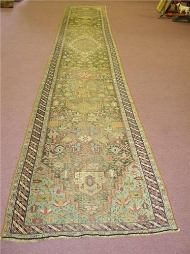PERSIAN KARABAGH LONG RUG (3 FT. 5" X 20 FT.) - UNUSUAL GREEN COLORS, WEAR & IMPERFECTIONS;