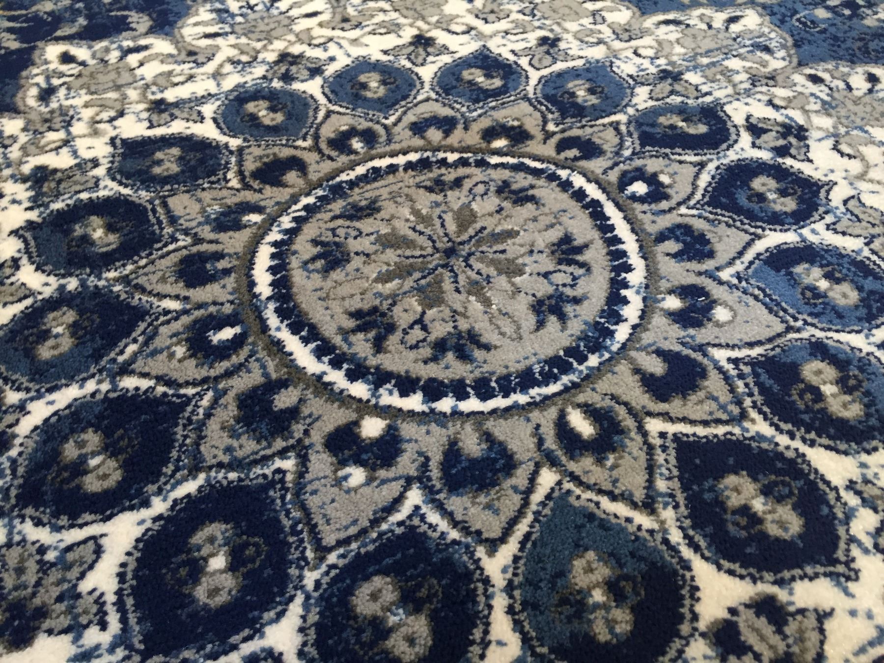 8x10.6 Persian Kashan design Brand name rug, in Navy Blue, silver ,Ivory, and multi accent colors, Made of durable and easy to care, polyproplyen pile power loom in Turkey.
