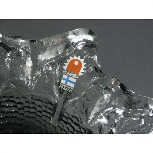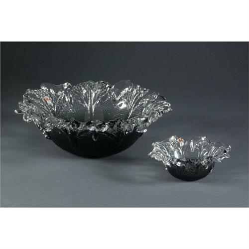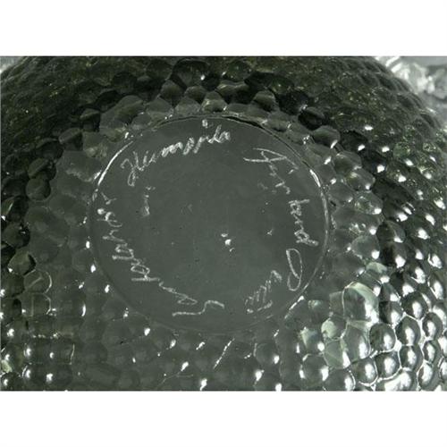 FINNISH ART GLASS: A pair of Humppila Finland art glass nesting bowls, dark graduated grey glass bottoms with a relief dot design terminating in a clear glass organic leaf form rim. The larger bowl measures 4.5'' x 14.5'', and the smaller bowl measures 2.5'' x 7.5'', both are signed by one of the great Finnish glass designers, ''Pertti Santalahti, Humppila, Finland'' on bottom, circa 1950's-'70's.