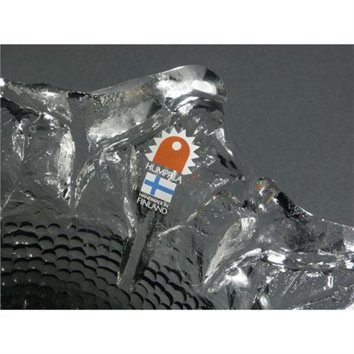 ART GLASS: A pair of Humppila Finland art glass nesting bowls, dark graduated grey glass bottoms with a relief dot design terminating in a clear glass organic leaf form rim. The larger bowl measures 4.5'' x 14.5'', and the smaller bowl measures 2.5'' x 7.5'', both are signed by one of the great Finnish glass designers, ''Pertti Santalahti, Humppila, Finland'' on bottom, 1950's-'70's.