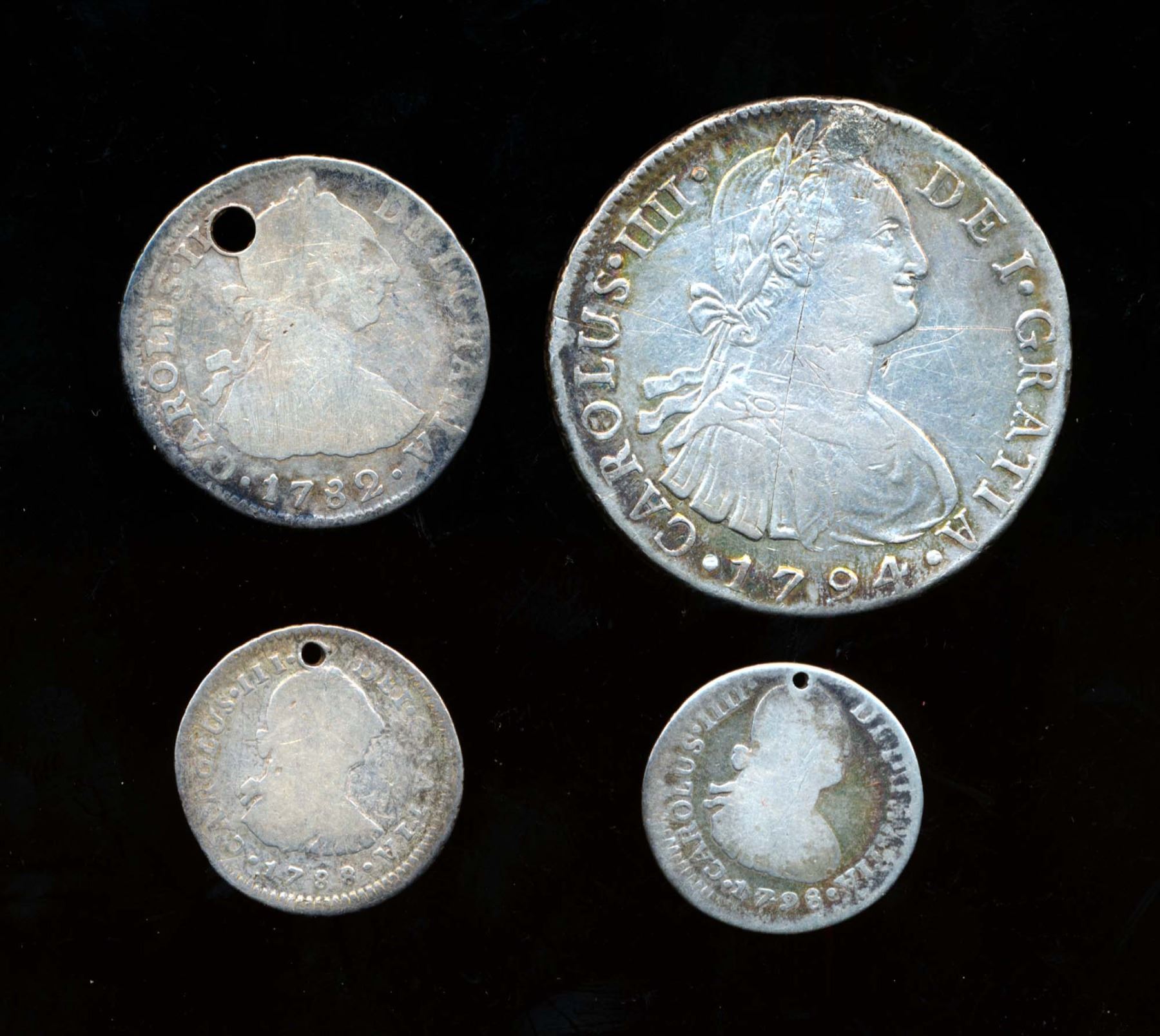 PERU A Quartet of Holey Coins 1782-1794 39.0 grams of Silver