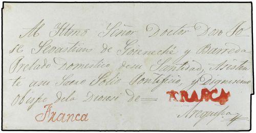 1851 (22-Agosto) CHIAPA a AREQUIPA. Marca TARAPACA en rojo y manuscrito "Franca".