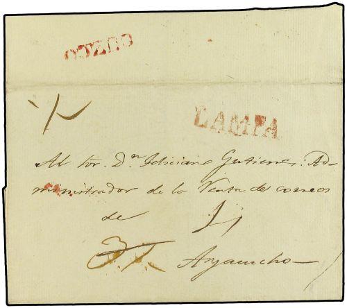 (1845 CA.) Envuelta dirigida a AYACUCHO. Marca LAMPA y al dorso CUZCO ambas en rojo.