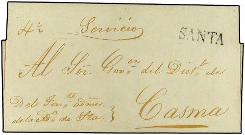 (1845 CA.) Envuelta dirigida a CASMA. Marca lineal SANTA en negro.