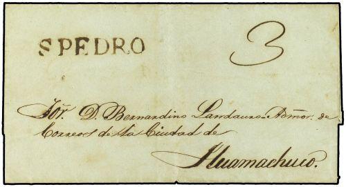 (1840 CA.) Envuelta dirigida a HUAMACHUCO. Marca S. PEDRO en tinta de escribir.