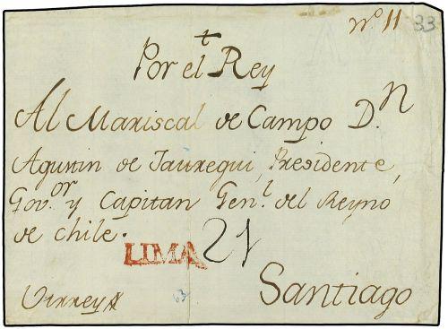 (1800 CA.) FRONTAL dirigido a SANTIAGO. Marca lineal LIMA y manuscrito "Por el Rey".