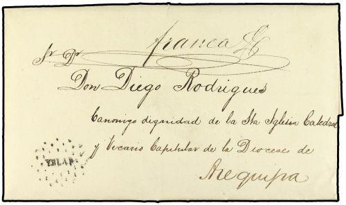 1865 (29-Julio) ISLAY a AREQUIPA. Marca YSLAY dentro de un circulo de puntos y manuscrito "FRANCA". No reseñado como marca prefilatelica.