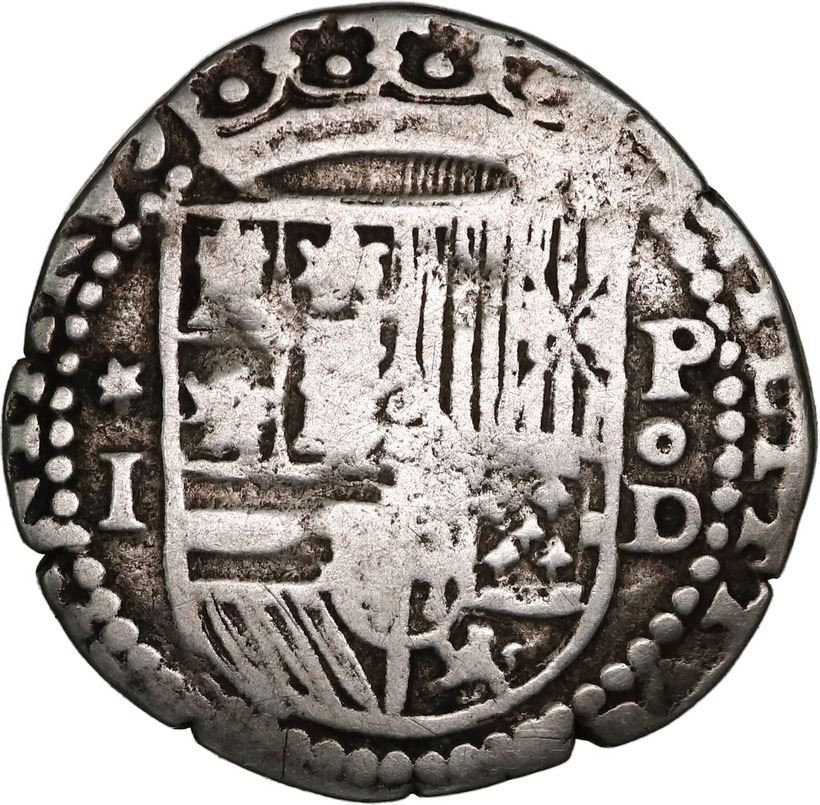 PERU, Lima, cob 1 real, Philip II, assayer Diego de la Torre, *-I to left, P-oD to right, ex-Ponte. S-L4; KM-7; Cal-212. 2.96 grams. Circulated Fine details with centered strike showing off full shield and cross, clear mintmark and assayer, some parts of the legends visible yet mostly off the flan. Pedigreed to the Luis R. Ponte Collection.