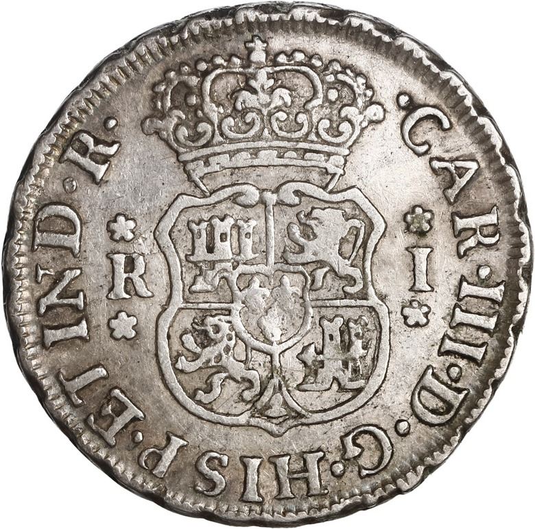 PERU, Lima, pillar 1 real, Charles III, 1771 JM, ex-O'Brien.