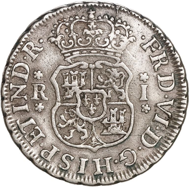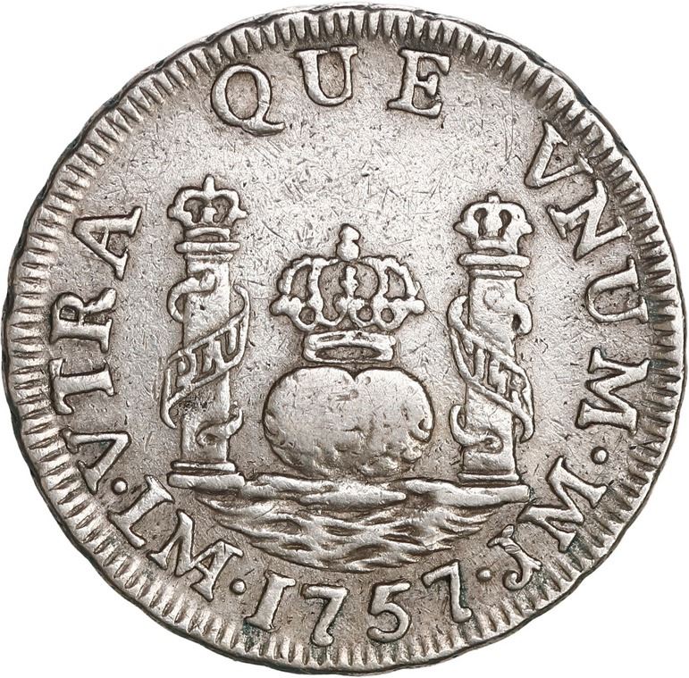 PERU, Lima, pillar 1 real, Ferdinand VI, 1757 JM, ex-O'Brien.