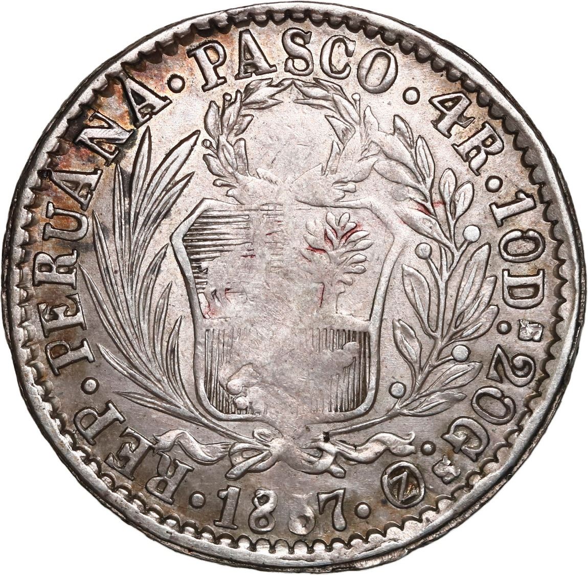 PERU, Pasco, 4 reales, 1857, assayer Z-in-circle, with fleur-de-lis, with dot below s in Gs, NGC XF