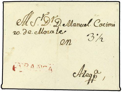 (1800 CA) Sobre dirigido a AREQUIPA. Marca TARAPACA en rojo. MUY RARA.