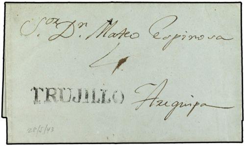 1843 (28-Mayo) TRUJILLO a AREQUIPA. Marca lineal TRUJILLO en negro.