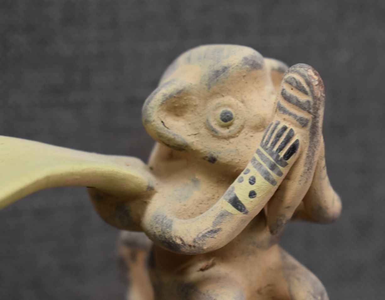 contemporary Peruvian pottery canteen with monkey 8.5" x 7.5" x 5.5"