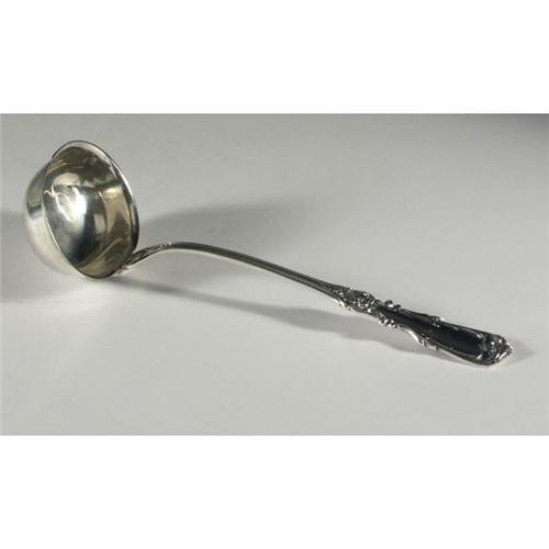 PERUVIAN STERLING: A sterling silver oyster or cream soup ladle .925 by Camusso Sterling Silver, a firm that began in 1933 in Lima Peru and is still in business specializing in sterling silver, hallmarked Camusso, ''Industria Peruna Plata Esterlina .925, flag, Camusso''. The pattern is attributed to Modelo Imperial 921, 13'', 4.67 ozt.