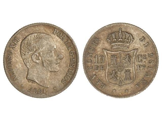 PESETA SYSTEM: ALFONSO XII - 10 Centavos de Peso. 1881. MANILA. Pátina. (Rayitas). MBC-.