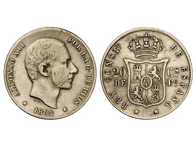 PESETA SYSTEM: ALFONSO XII - 20 Centavos de Peso. 1882. MANILA. MBC-.