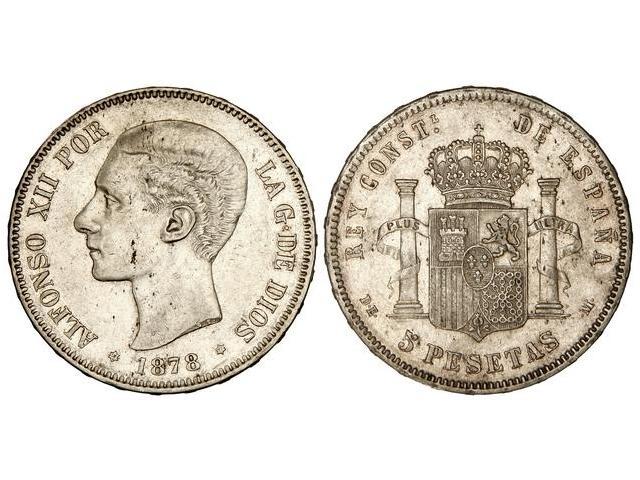PESETA SYSTEM: ALFONSO XII - 5 Pesetas. 1878 (*18-78). D.E.-M. MBC+.
