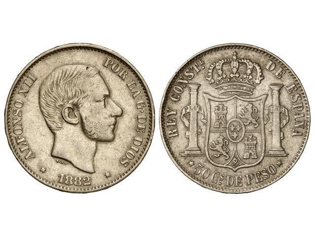PESETA SYSTEM: ALFONSO XII - 50 Centavos de Peso. 1882. MANILA. (Rayitas y golpecitos). MBC.