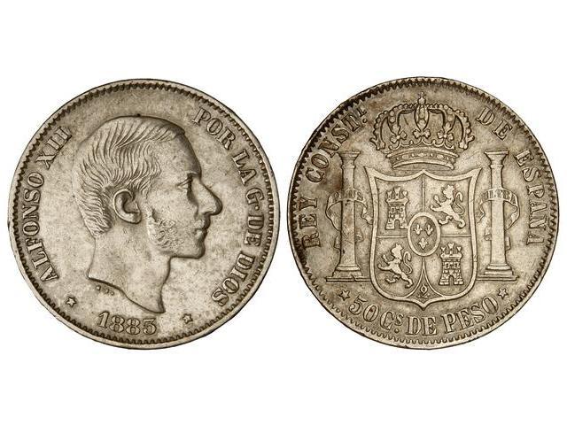 PESETA SYSTEM: ALFONSO XII - 50 Centavos de Peso. 1883. MANILA. MBC.