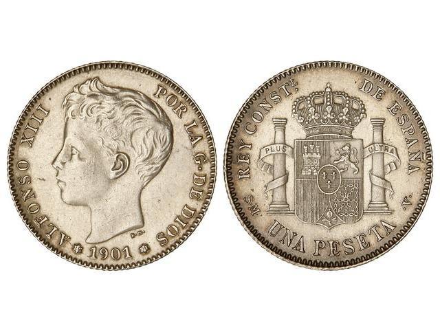 PESETA SYSTEM: ALFONSO XIII - 1 Peseta. 1901 (*19-01). S.M.-V. (EBC).