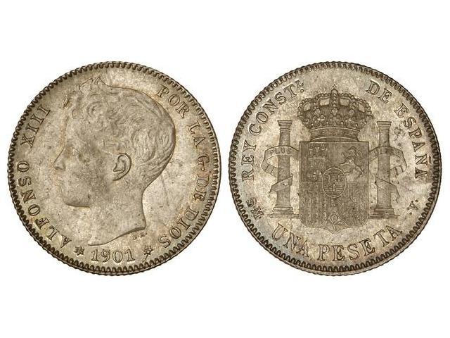 PESETA SYSTEM: ALFONSO XIII - 1 Peseta. 1901 (*19-01). S.M.-V. Pátina. SC.