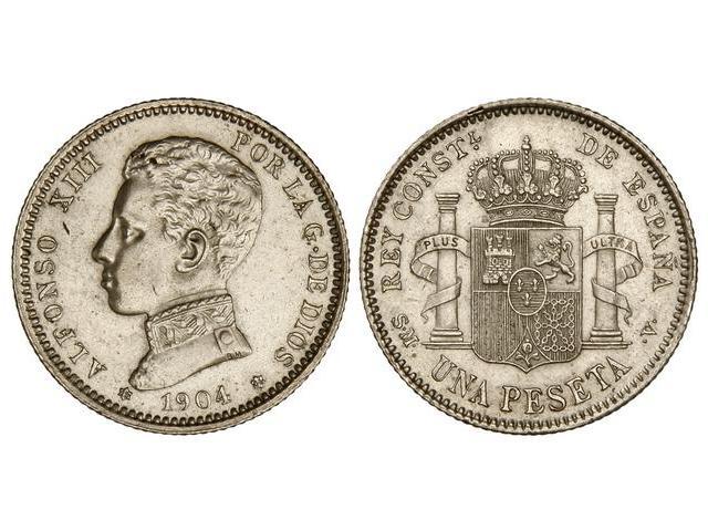 PESETA SYSTEM: ALFONSO XIII - 1 Peseta. 1904 (*19-04). S.M.-V. (Leves golpecitos en anverso). EBC.