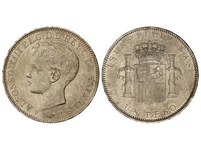 PESETA SYSTEM: ALFONSO XIII - 1 Peso. 1897. MANILA. S.G.-V. (Pequeñas rayitas y golpecitos). MBC+.