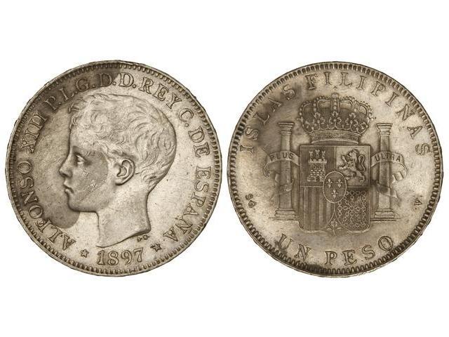 PESETA SYSTEM: ALFONSO XIII - 1 Peso. 1897. MANILA. S.G.-V. (Pequeños golpecitos y mancha). EBC-.