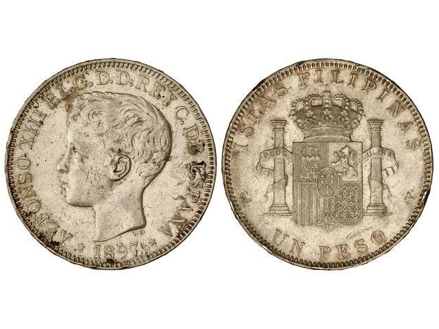 PESETA SYSTEM: ALFONSO XIII - 1 Peso. 1897. MANILA. S.G.-V. (Rayas y golpes). MBC+.