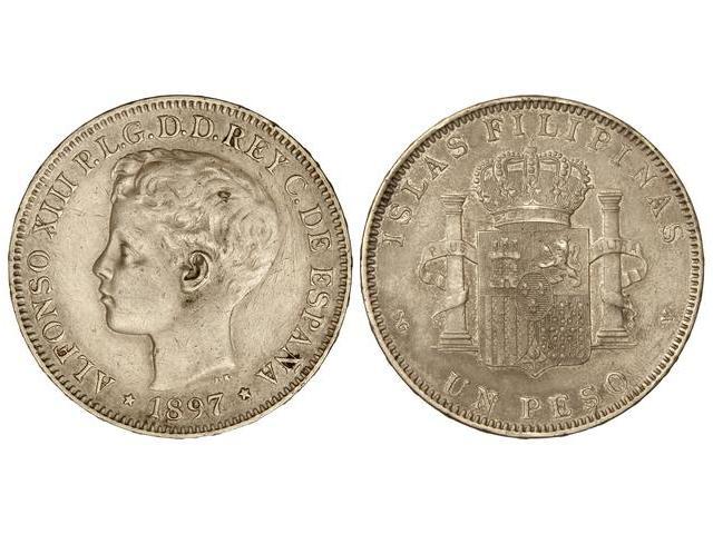 PESETA SYSTEM: ALFONSO XIII - 1 Peso. 1897. MANILA. S.G.-V. (Rayitas en anverso). MBC+.