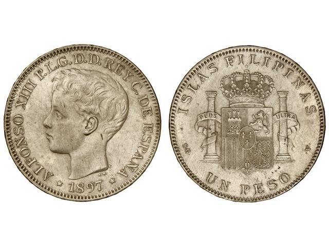 PESETA SYSTEM: ALFONSO XIII - 1 Peso. 1897. MANILA. S.G.-V. (Rayitas y golpecitos). MBC+.