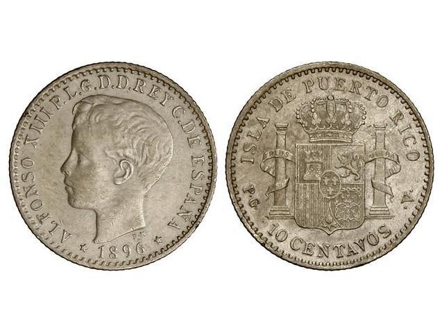 PESETA SYSTEM: ALFONSO XIII - 10 Centavos de Peso. 1896. PUERTO RICO. P.G.-V. (Leves rayitas). MBC+.