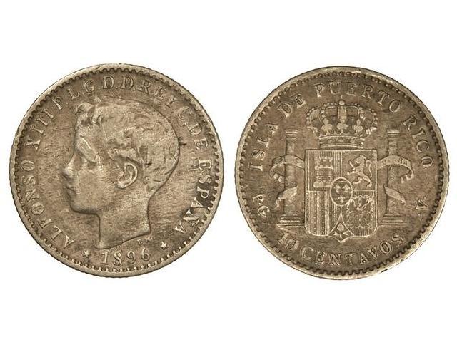 PESETA SYSTEM: ALFONSO XIII - 10 Centavos de Peso. 1896. PUERTO RICO. P.G.-V. MBC.