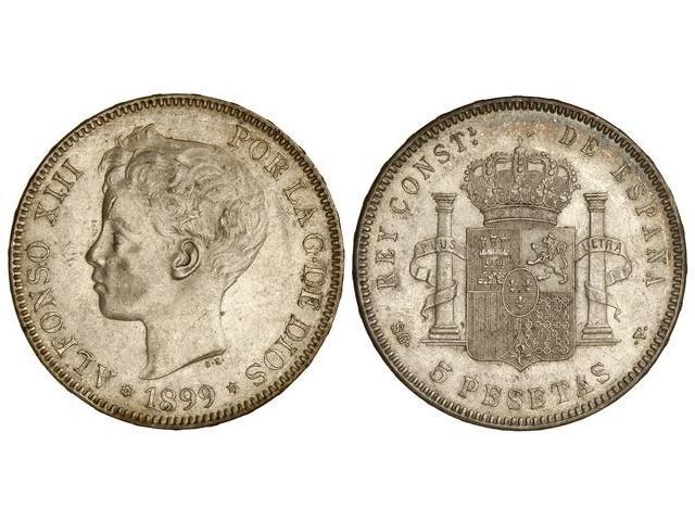PESETA SYSTEM: ALFONSO XIII - 5 Pesetas. 1899 (*18-99). S.G.-V. (Rayitas). EBC.