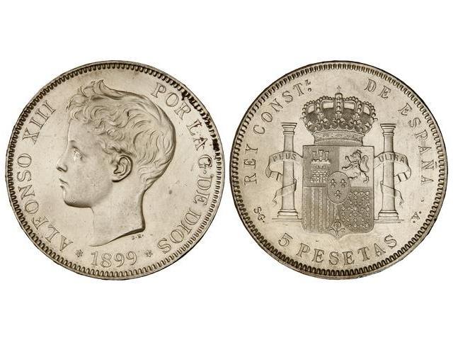 PESETA SYSTEM: ALFONSO XIII - 5 Pesetas. 1899 (*18-99). S.G.-V. (Rayitas). EBC.