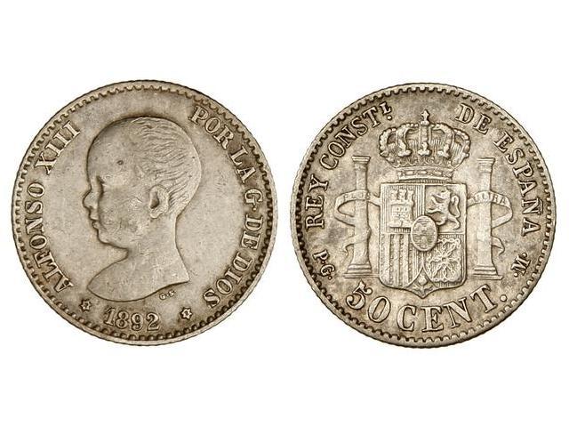 PESETA SYSTEM: ALFONSO XIII - 50 Céntimos. 1892 (*2-2). P.G.-M. MBC.