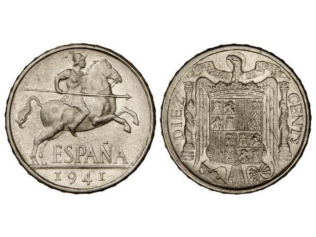 PESETA SYSTEM: ESTADO ESPAÑOL - 10 Céntimos. 1941. Variante PLUS con V. EBC.