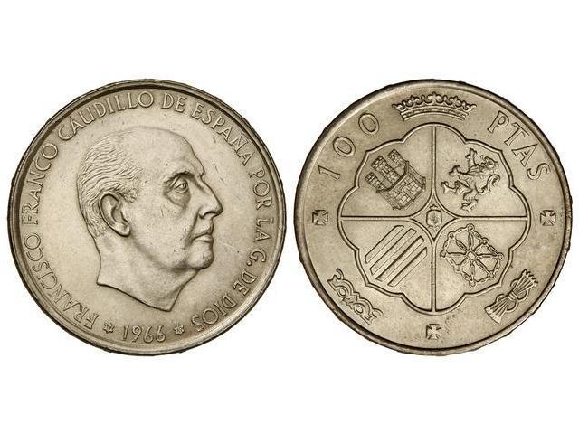 PESETA SYSTEM: ESTADO ESPAÑOL - 100 Pesetas. 1966 (*19-69). Palo recto. EBC+.