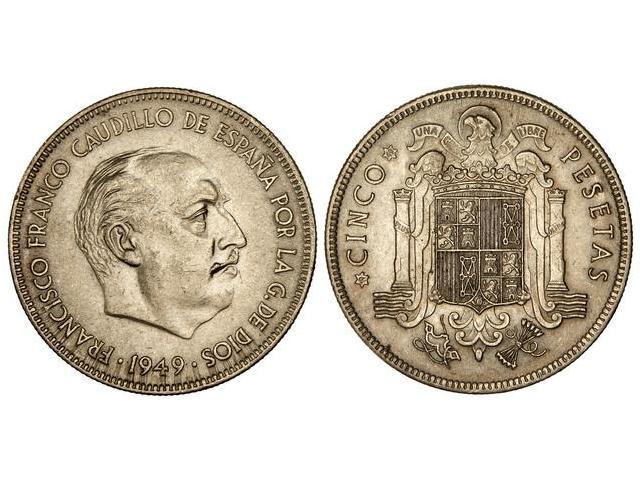 PESETA SYSTEM: ESTADO ESPAÑOL - 5 Pesetas. 1949 (*19-49). Defecto bigote. EBC.