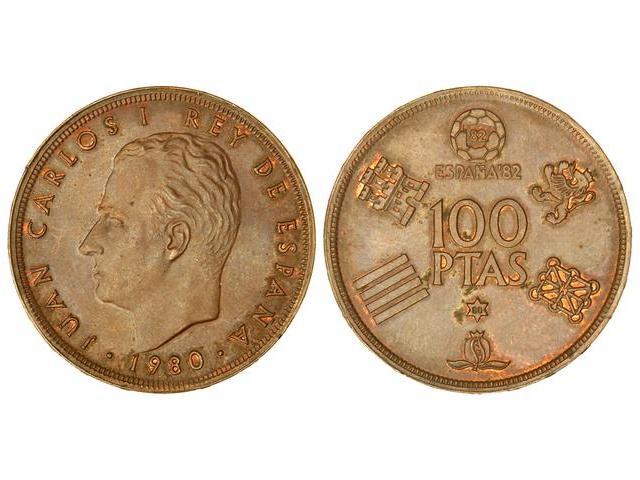 PESETA SYSTEM: JUAN CARLOS I - 100 Pesetas. 1980 (*80). ERROR: Acuñada en AE. JBM-121.3.2c. EBC.